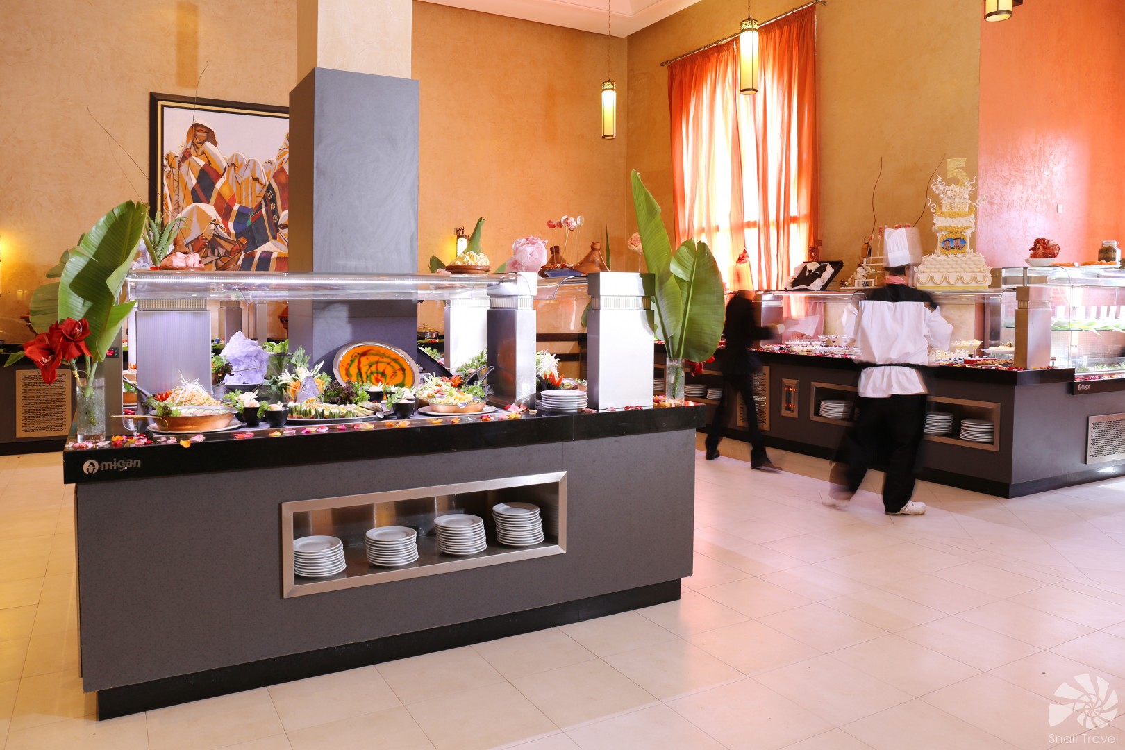 V hotelových restauracích na hosty čeká pestrá nabídka jídel od mezinárodních specialit až po autentickou marockou kuchyni. K dispozici jsou stylové bary, které nabízejí koktejly, vína a nealkoholické nápoje během dne i večera. Díky all inclusive konceptu si hosté mohou užívat bezstarostnou dovolenou s neomezeným kulinářským servisem.